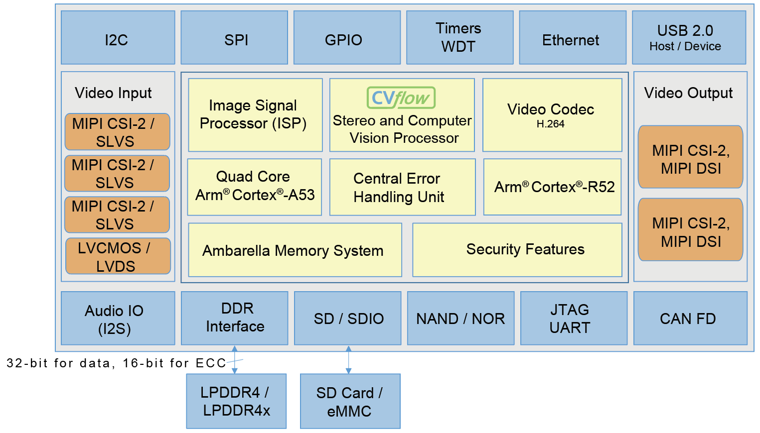 Our CVflow-based SoCs also feature the Arm Cortex-A53 processor, allowing the parallel execution of intelligent tasks such as object tracking or decision making, alongside traditional computing tasks.