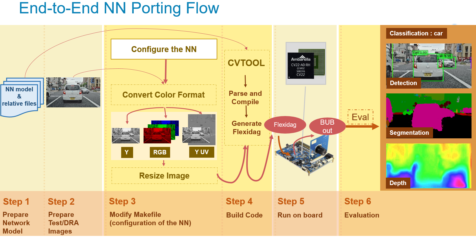 Therefore, when it came time to build an embedded architecture for computer vision processing, we followed a similar path, using the same methodology that succeeded before, combining existing design elements with new concepts to address the unique challenges of AI. After studying common algorithms in traditional computer vision, emerging techniques in convolutional neural networks, and the autonomous driving algorithm stack developed by VisLab (acquired by Ambarella in 2015), we developed an elegant piece of hardware that is lean, mean, and highly practical—known as CVflow®.
